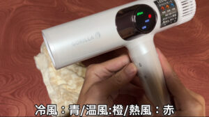 このドライヤー、温度によって側面のディスプレイ(ゴリラの顔)の色が変わります。